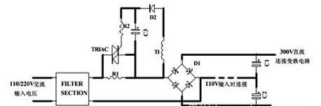上圖所示為串聯(lián)電阻法沖擊電流控制電路(適用于橋式整流和倍壓電路,其沖擊電流相同),關(guān)于110V、220V雙電壓輸入電路,應(yīng)該在R1和R2方位放兩個(gè)電阻,這樣在110V輸入銜接線銜接時(shí)和220V輸入銜接線斷開時(shí)的沖擊電流相同大。關(guān)于單輸入電壓電路,應(yīng)該在R3方位放電阻。