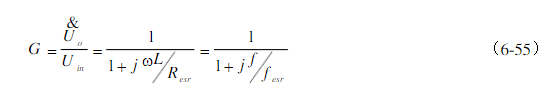 濾波電容有ESR的LC濾波器幅頻特性如圖6.35b的曲線123456。大多數(shù)濾波電容具有ESR。在f0以上的低頻段,容抗遠遠大于ESR,從Uo看到阻抗僅是容抗起主要效果,斜率仍為-40dB/dec;在更
